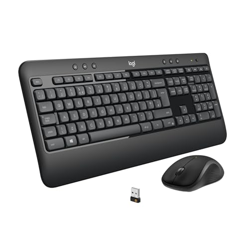 Logitech MK540 Combo Advanced, Clavier et Souris sans Fil, Clavier PC ou Ordinateur Portable, Récepteur USB Unifying Desk Mat, Large Tapis de Bureau, sous-Main Gris, pour Le Télé-Travail