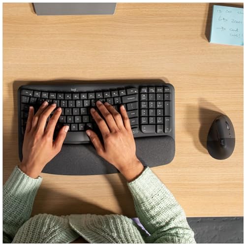 Logitech Wave Keys et Souris Verticale Lift - Ensemble Clavier et Souris sans Fil Ergonomique, avec Repose-Poignets rembourré, Easy-Switch, Bluetooth, Multi-systèmes d’Exploitation, Windows/Mac