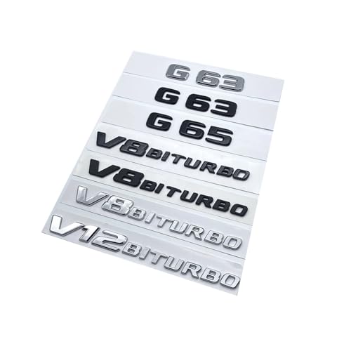 YSRWTBBA 2017 lettres plates G63 G65 V8 Biturbo V12 Biturbo emblème Compatible avec W463 plaque signalétique de coffre latéral de voiture Logo autocollant Facile à installer, il suffit de peler et col