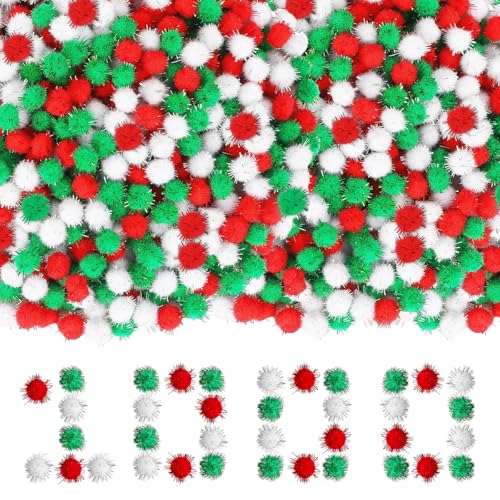 Pompons Loisirs Creatifs 1000 Pièces Pompom Loisir Creatif 1.5 cm Ponpon Loisirs Creatifs à Paillettes Pompons Noel pour Décorations Fête de Noël, Diy