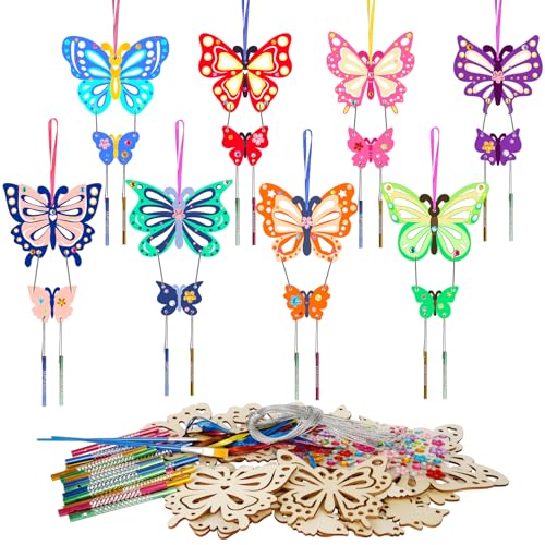 HONMOK 12 Kits Bricolage Papillons en Bois Carillons à Fabriquer pour Enfant Papillon à Peindre Loisir Créatif Fille Garçon Carillon à Vent Créative Fête Halloween Noël Anniversaire