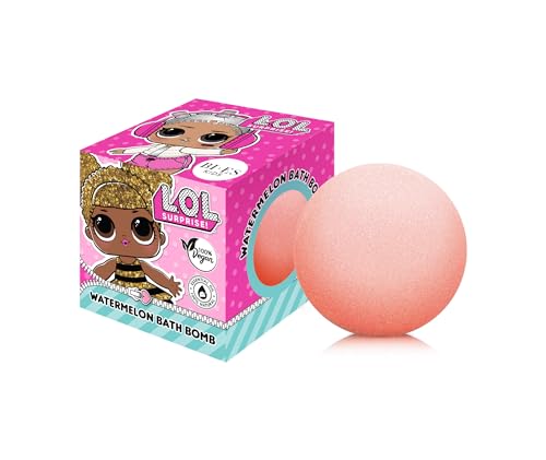 LOL Surprise Bombe de bain pétillante pour enfants – Parfum rafraîchissant de pastèque, végétalien et naturel avec des huiles essentielles (165 g) – Friandise de bain douce, sûre et amusante pour les
