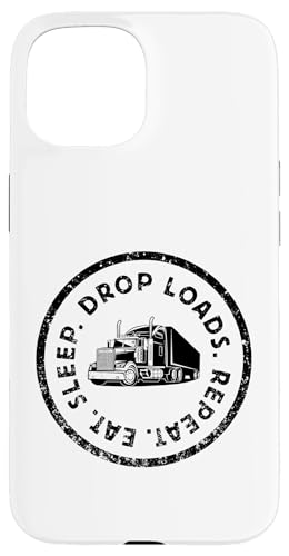 Chauffeur de Camion Long courrier Eat Sleep Drop Loads Repeat Trucker Coque pour iPhone 15