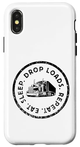 Chauffeur de Camion Long courrier Eat Sleep Drop Loads Repeat Trucker Coque pour iPhone X/XS