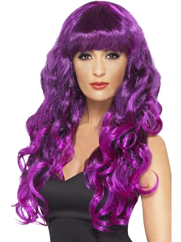 Smiffys Perruque sirène, Violet, Long, ondulé, avec frange Halloween