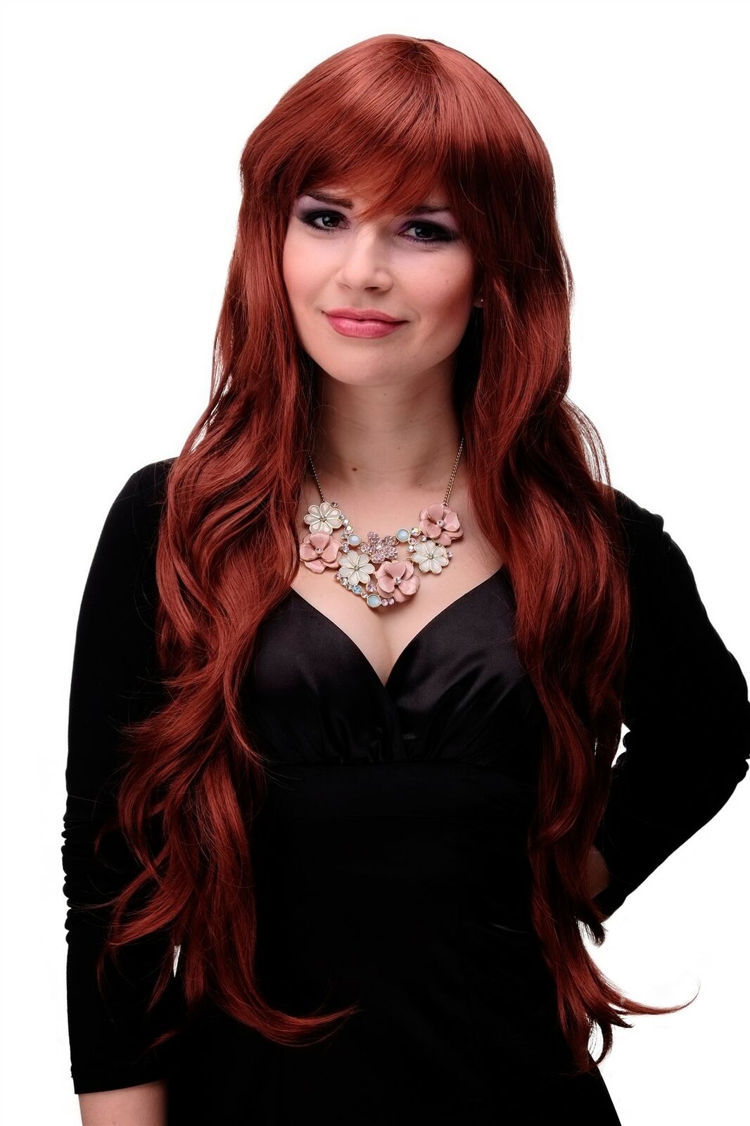 Perruque Femme Long Ondulés Frange Rouge Auburn Cuivre 80cm 6311-350