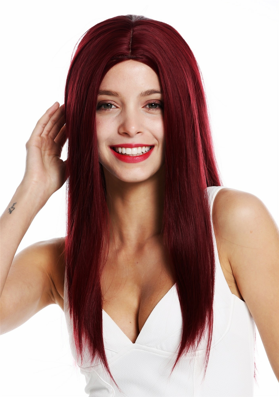 Perruque pour Femme Rouge Grenat Très Long Frange Raie Lisse 70cm 3111-39