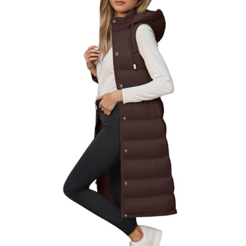 Gilet Long Femme Grande Taille Veste sans Manches avec Poche - Gilet Chaud À Capuche DéContractéS RembourréE avec Fermeture ÉClair Et Boutons Matelassé De Sport en Plein Air