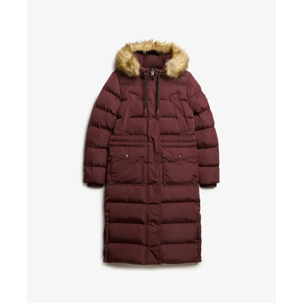 Doudounes Superdry Manteau d'hiver mi-long à capuche en fausse fourrure Fuji