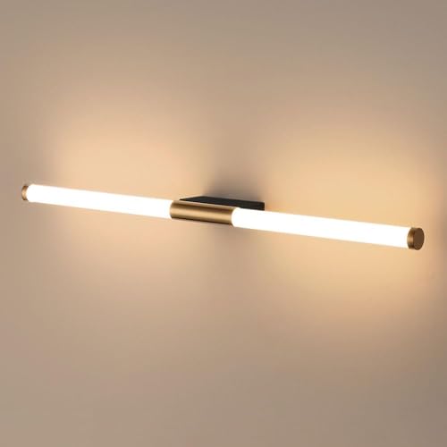 HLTYGWX Appliques murales Luminaires de Salle de Bains dorés sur Miroir Applique Murale linéaire à LED Lampe de vanité en Acrylique, luminaire Mural créatif à Tube Long en métal câblé (3000k, 49 cm)