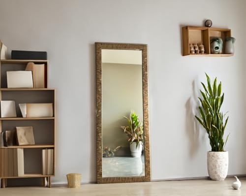 Biscottini Miroir Mural Long L50,5 x PR4,5 x H140,5 - Miroir de Sol et Mur Cadre en Bois - Miroir Chambre à Coucher et Salon - Miroir Long Mural - Miroir de Chambre à Coucher