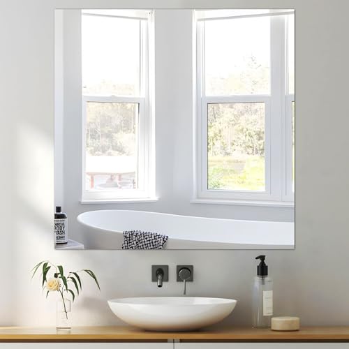 Sqinor Miroir Mural Rectangulaire, Miroir Adhesif Mural, Grand Miroir Rectangulaire Long Autocollant Verre Miroir Mural pour Chambre Salon Porte 35x35 cm