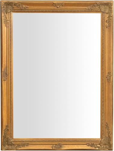 MO.WA Miroir Mural Long Moderne, Miroir Mural Cadre Bois Or Antique, 50x70, fabriqué en Italie, Miroir rectangulaire Chambre, Salle de Bain, Salon Maison