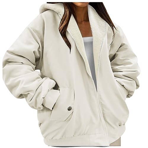 Wantdo Femme Veste Chaude à Capuche d'hiver Manteau en Polaire Sherpa Epaissie Parka Coupe-Vent Manteau d'Extérieur Mi-Long Décontracté Vert Militaire XL