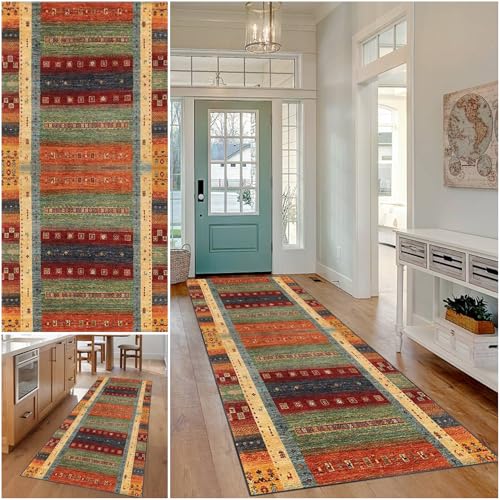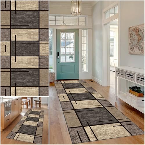 Tapis de couloir antidérapant long tapis étroit pour cuisine, couloir, escaliers avec dos antidérapant, lavable, design moderne vintage 1 m x 4 m