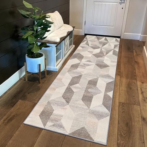 AZMANI Tapis de Passage pour Couloir Géométrie Tapis Long pour Couloir Tapis de Couloir Lavable Tapis Long Tapis de Passage Contemporain pour Couloir,1m x 3.5m