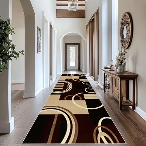 Tapis De Couloir 60x330cm Beige Marron Cuisine Tapis Antidérapant Chemin De Tapis Lavable Boho Anti Dérapant Long Hall Runner Tapis pour Couloir Chambre Porte Escalier Marches