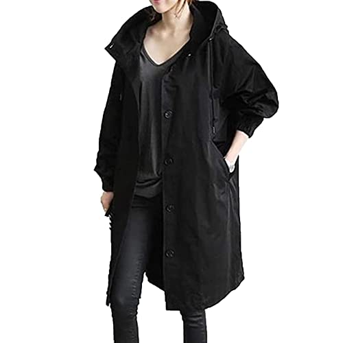 Sawmew Trench-Coat Femme Manteau Long Trench-Coat Femme Oversize Long Léger Parka Veste Coupe-Vent Manteau Classique Automne Printemps Veste (Color : Black, Size : XXL)