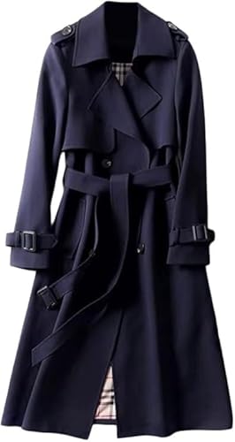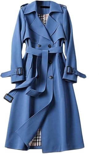 JiaWell Trench-Coat croisé for Femme, Long Manteau Coupe-Vent, Cardigan, Manteau d'hiver uni, Revers, Manteau Coupe-Vent for Femme, Manteau de Transition avec Poches et Boutons(Blue,XX-Large)