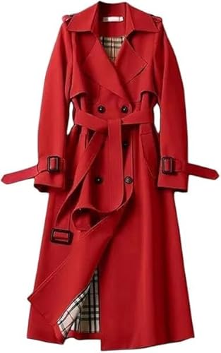 JiaWell Trench-Coat croisé for Femme, Long Manteau Coupe-Vent, Cardigan, Manteau d'hiver uni, Revers, Manteau Coupe-Vent for Femme, Manteau de Transition avec Poches et Boutons(Red,L)