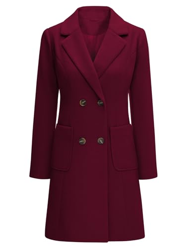 Yuson Girl Manteau Femme Hiver Manteau en Laine Classique Chaud Trench Coats Double Boutonnage À Revers Chic Manteaux Blazer Mi-Long Casual Veste(Bourgogne, XL)