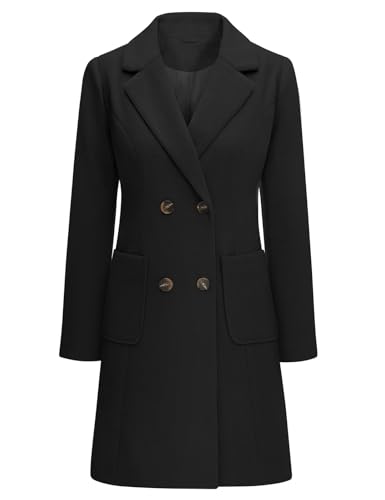 Yuson Girl Manteau Femme Hiver Manteau en Laine Classique Chaud Trench Coats Double Boutonnage À Revers Chic Manteaux Blazer Mi-Long Casual Veste(Noir, S)