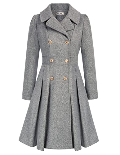 GRACE KARIN Manteau d'hiver pour femme - Manteau à double boutonnage - Longueur genou - Trench - Long - Coupe A - Veste d'extérieur, Bouton gris clair,