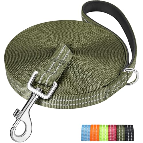 X XBEN Longe pour Chien 20M, Laisse de Dressage avec Poignée Confort et Mousqueton Verrouillable, Robuste pour Petits, Moyens et Grands Chiens, Vert Olive