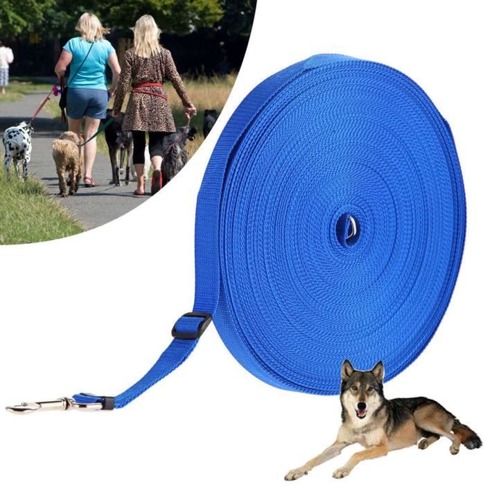 Longue laisse Longe pour chien 20m Sangle de dressage Laisse de dressage Réglable pour chien Idéal Promenade ou arrimage Bleu