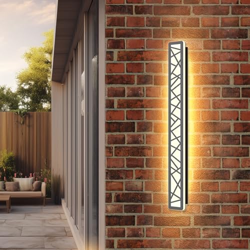 LUOLONG Applique longue LED Villa Applique murale Villa Porche Applique extérieure IP65 Appliques murales étanches Noir Longue bande lumineuse Applique extérieure de jardin-115CM, Lumière chaude
