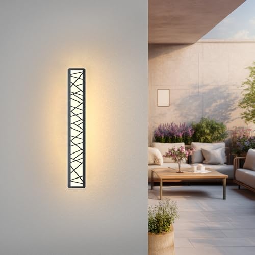K-Bright Applique Murale Extérieure, 20W Longue Villa Applique Murale Imperméable IP65 Pour Jardins, Terrasses, Chambres, Lampe Murale D'intérieur De Salon 3000K (Noir, 60CM)