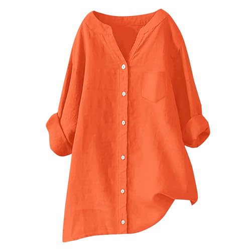 Chemise en Lin Femme Manche Longue, Chemise Lin Femme Plage, Tunique Lin avec Boutons Oversize Uni Chemisier Longue Blouse Coupe Ample Haut Chemise Chic et Élégant Tunique Chemisiers et Blouses Col V