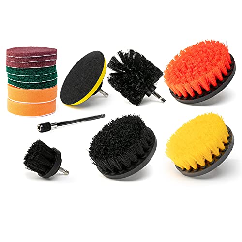 Neiko Ensemble de 15 pièces de Fixation pour perceuse - Polissage, Polissage, récurage - Tampon Rond pour Tapis - Brosse à récurer électrique pour Toilettes - Extension Longue portée Incluse,
