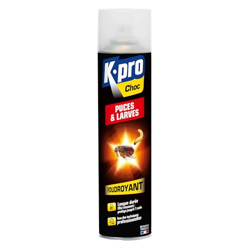 K.PRO - Spray Aérosol Foudroyant Puces et Larves - Détruit les puces et les Larves - Protection Longue Durée - Longue Portée - Technique Professionnelle - Jusqu'à 3 Mois de Protection