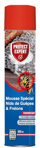 Protect Expert Aérosol Anti Nids De Guêpes & Frelons - 600ml - Mousse &Jet Longue Portée - Traitement A Distance - Pulvérisation Jusqu’à 3 Mètres - Action Choc & Foudroyante GUEPMOUS600