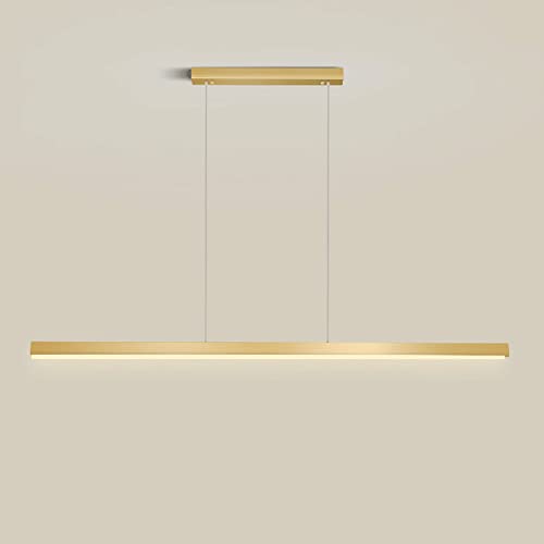 Plafonnier, plafonnier en aluminium doré, longue suspension en métal avec 2 anneaux de suspension, lampe de salon moderne à LED, lustre linéaire minimaliste pour îlot de cuisine (lumière chaude LWX