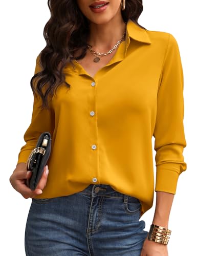 TOMEEK Chemisiers Blouse Femme et Col en V Manches Longues Chemise Blanc Femme Haut Élégant Shirt pour Travail Manche Courte Polo Décontracté Boutons Top(Jaune,L)