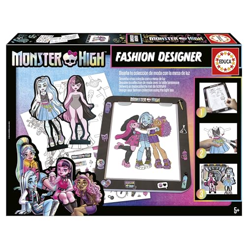 Educa - Tableau Design Monster High, Atelier de stylisme Monster High Fashion Designer et fais défi ler tes looks avec des fi gurines Barbie sur le podium du défi lé de mode. A partir de 5 ans (19826)