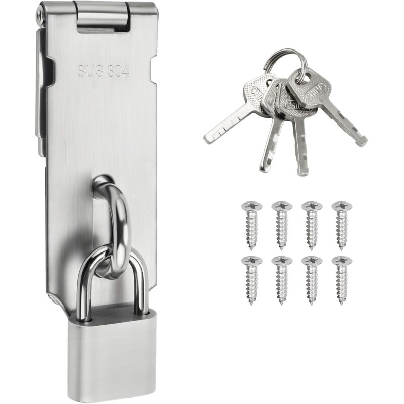 Targette De Porte Exterieur Avec Fermoir À Cadenas, 135mm Loquet De Porte Coulissante En Acier Inoxydable, Petit Loquet Verrou De Porte Avec Vis Pour Entrepôt Garage Grange Portail Cour Porte