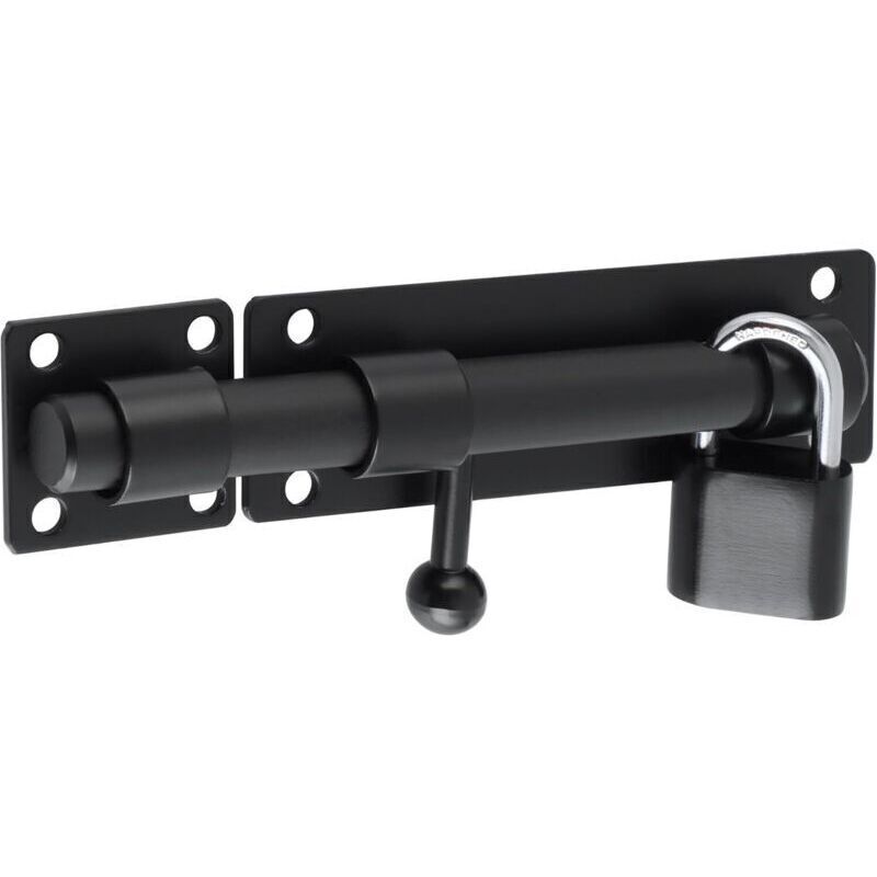 Verrou Porte Exterieur Coulissante Avec Cadenas, Robuste Loquet Porte Portail Par 304 Acier Inoxydable, Noir Mat, 150mm Longueur, 16mm Diamètre De Tige, Emst8060-B