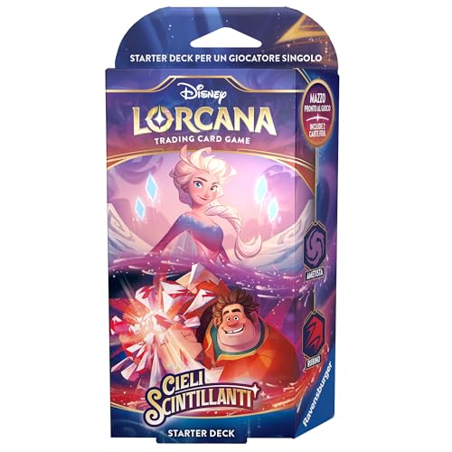 Ravensburger - Disney Lorcana TCG : Ciel étincelant, Starter Deck Améthyste & Rubis 60 Cartes, Cartes à Collectionner pour Adultes et Enfants, idée Cadeau 8+ Ans, édition en Italien