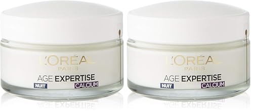 L'Oréal Paris - Crème de Nuit Anti-Âge Fortifiante - Soin Nuit Redensifiant Anti-Rides Triple Action - Enrichi en Calcium - Pour Peaux Matures - À partir de 55 ans - Age Expertise - 50 ml (Lot de 2)