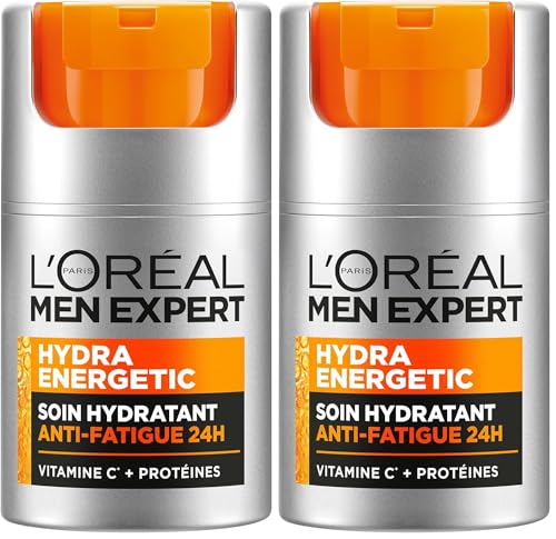 L'Oréal Men Expert - Soin Hydratant Anti-Fatigue 24H pour Homme - Hydrate & Illumine - Concentré en Vitamine C Pure 10% - Usage Quotidien - Hydra Energetic - 50 ml (Lot de 2)