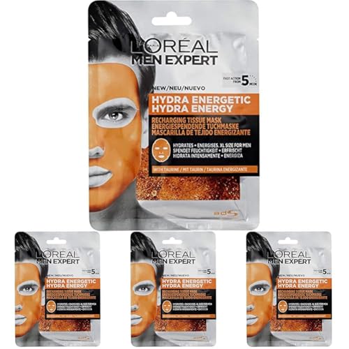 Men Expert Hydra Energetic Tissue Masque facial pour homme, masque en tissu pour peau d'apparence fatiguée (lot de 4)