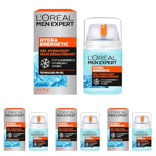 L'Oréal Men Expert - Gel Hydratant Visage pour Homme - Soin Maxi Désaltérant - Effet Glaçon Rafraîchissant - Technologie Air-Gel - Tous Types de Peaux - Hydra Energetic - 50 ml (Lot de 4)