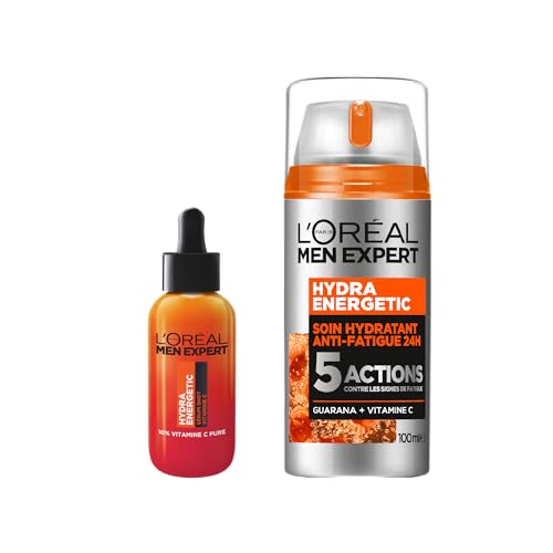 L'Oréal Men Expert - Routine soin visage pour homme Hydra Energetic Soin Hydratant 24H XXL + Sérum Shot Vitamine C