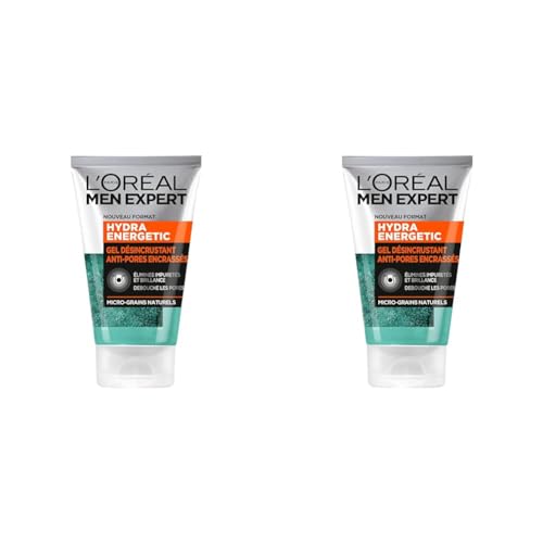 L'Oréal Men Expert - Gel Désincrustant Anti-Pores Encrassés pour Homme - Soin Visage Exfoliant - Concentré en Micro-Grains Naturels - Tous Types de Peaux - Hydra Energetic - 100 ml (Lot de 2)