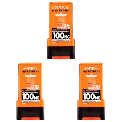 L'ORÉAL Paris Men Expert Hydra Energetic Gel Douche Homme, Taurina Effet Réveil immédiat, 300 ml (Lot de 3)