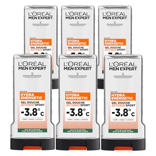 L'Oréal Men Expert Hydra Energetic Gel Douche Extreme Sport -3.8°c Sensation de Fraîcheur - Lot de 6 x 300ml