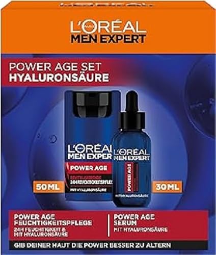 L'Oréal Men Expert - Trousse Routine Experte pour Homme - Soins Visage Revitalisant & Anti-Âge - À l'Acide Hyaluronique - Pour Tous Types de Peaux - Power Age - 3 Produits